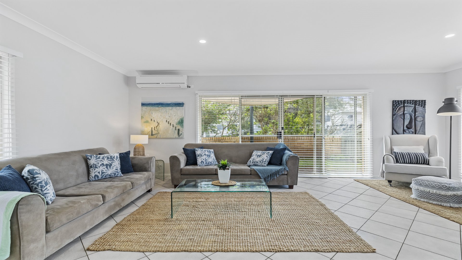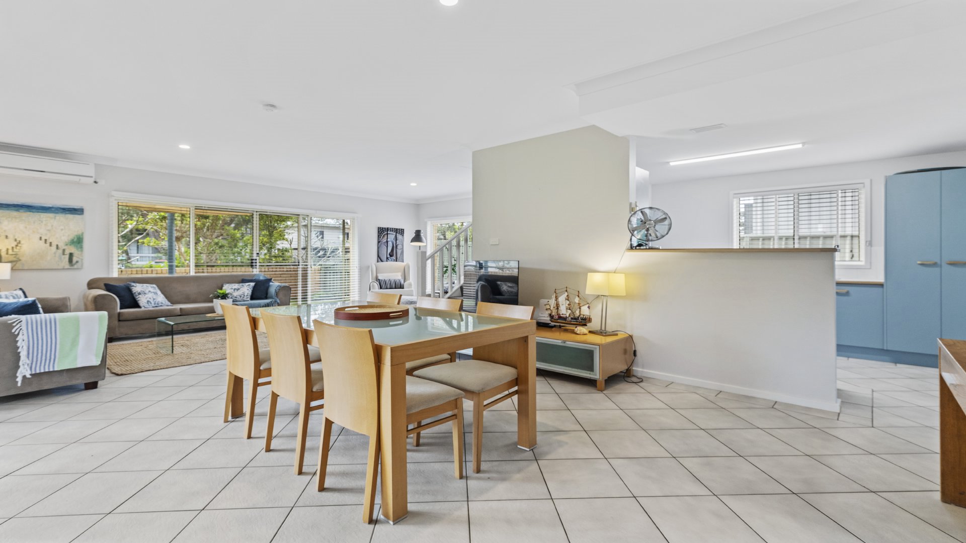 Modern 3 bedroom, 3 bathroom townhouse with single garage and extra off street secure parking - perfect for a boat. The living room has reverse cycle air conditioning as does the main bedroom which also has an ensuite. Well appointed kitchen with dishwasher and microwave. Only 200 metres to the surf beach, short stroll to golf course and shops. This beautifully appointed home has good availability. Sleeps 6 (2 queens and 2 singles) This property has WIFI - NO LINEN SUPPLIED but can be hired from us and the cost is $22 per person.