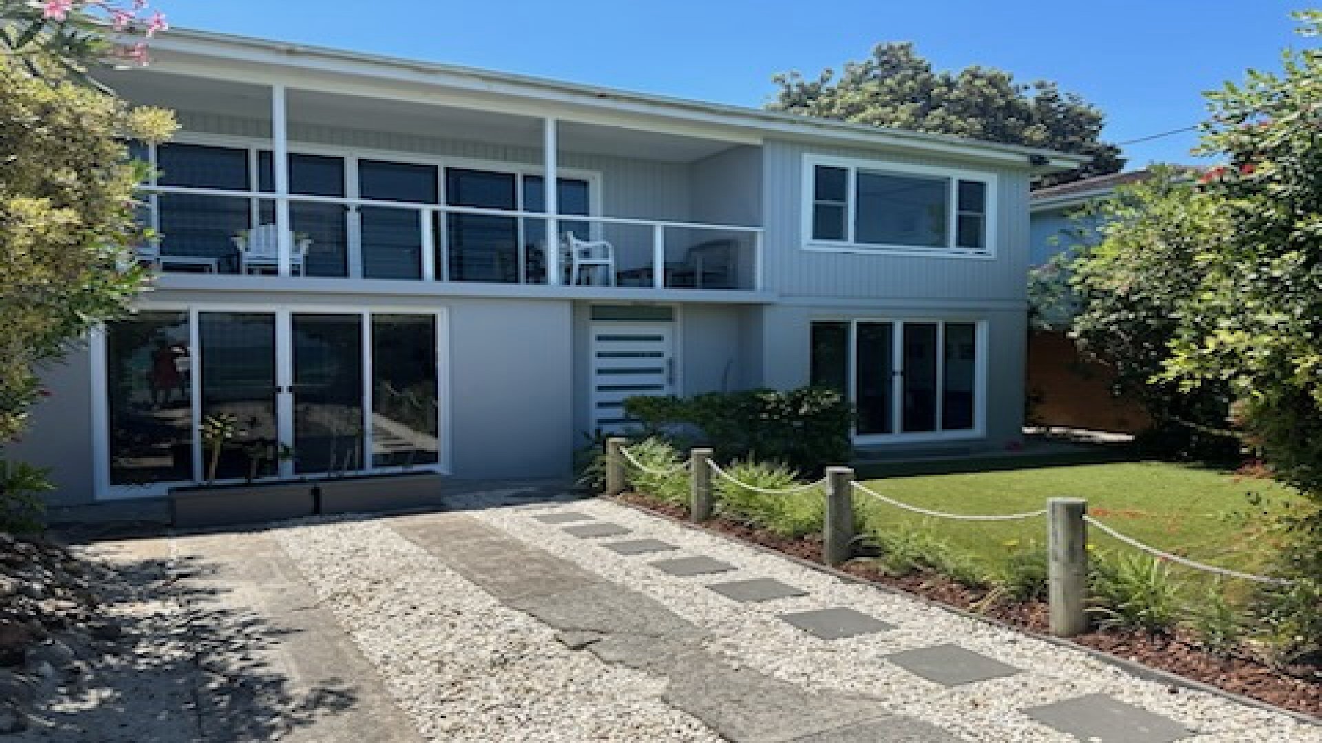 Imagine holidaying only metres from the pristine waters of Jimmys Beach with spectacular 180 degree views over Port Stephens to the open ocean. This 2 storey residence is stunning and offers a fusion of luxury, tranquility and light that would appeal to the most discerning of guests. Four generous bedrooms, 3.5 bathrooms, 3 living areas plus decks front and rear, makes it the perfect beach getaway even for 2 families. Beautifully appointed with everything you will need to make this a comfortable and memorable holiday. A games room with pool table, TV, bar and a host of games and movies to keep everyone entertained as well as a fully equiped gym. (Sleeps 6 Adults + 4 Children (2 kings, 1 queen and 2 x single bunk beds) Book now for your escape to paradise! This property does not have WIFI - LINEN IS NOT SUPPLIED but can be hired from us and the cost is $22 per person