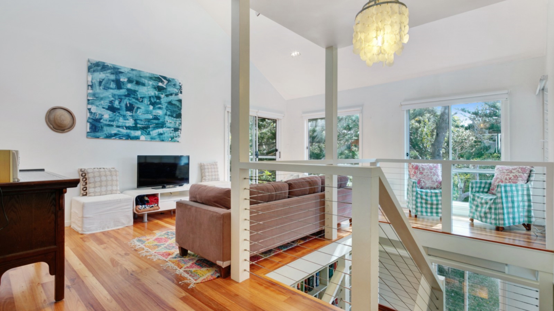 Quintessential beach house with access to Jimmys Beach opposite. 4 bedrooms 3 bathrooms and sleeps 8 people. Air conditioned living / dining. Well appointed kitchen. Modern bathrooms - main bedroom has ensuite and upstairs bathroom with large bath. This property has 2 living areas. Outdoor setting & Ziggy bbq. Sleeps 8 (Upstairs front: 1 king bed or 2 x king singles, Upstairs back: 1 king bed or 2 x king singles, Downstairs front: 1 queen bed, Downstairs back: 2 x singles). Well behaved pets welcome on decks. The garden is not fenced. Chain recommended Great availability! This property has WIFI. Linen can be hired from us and the cost is $22 per person.