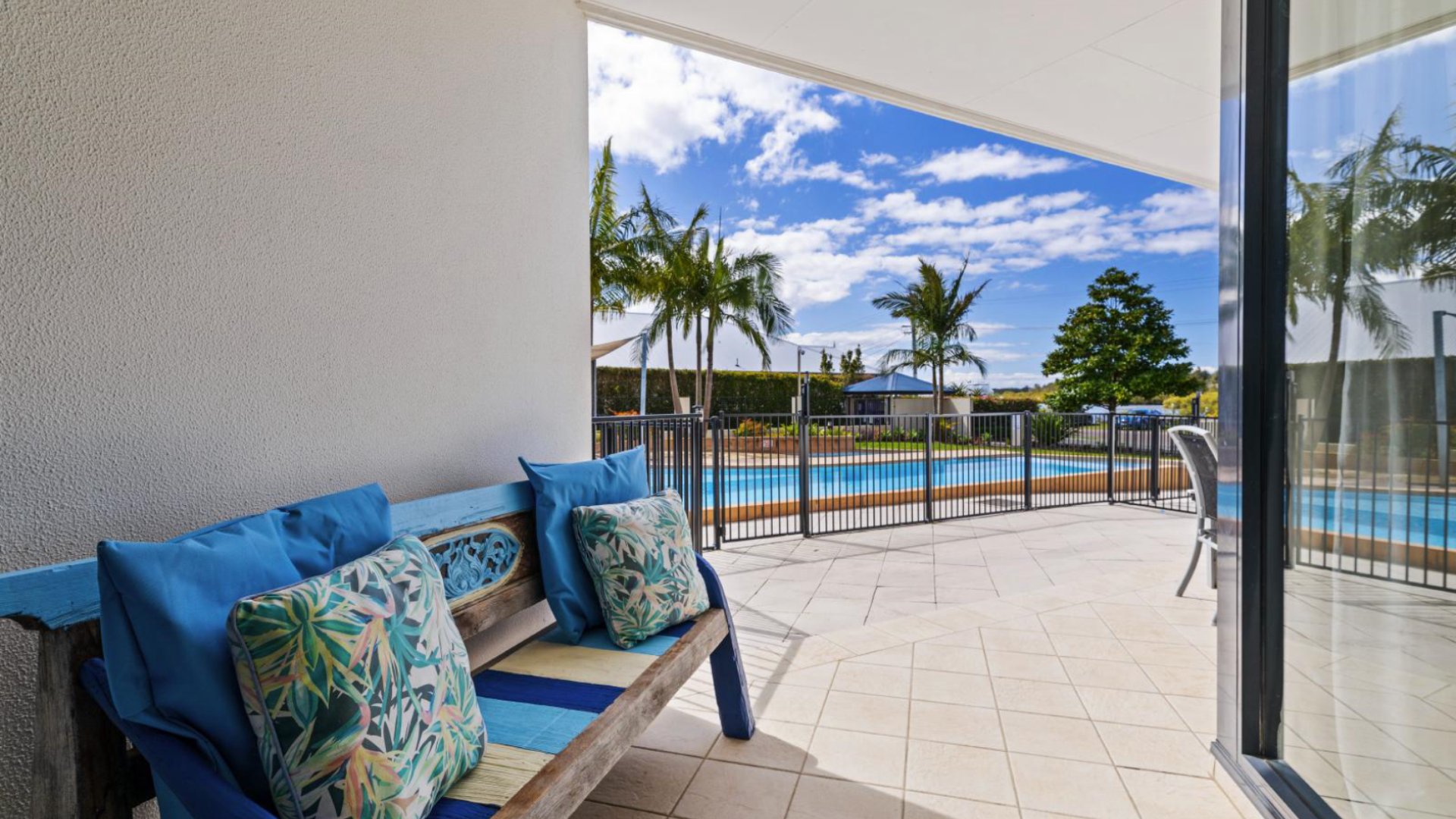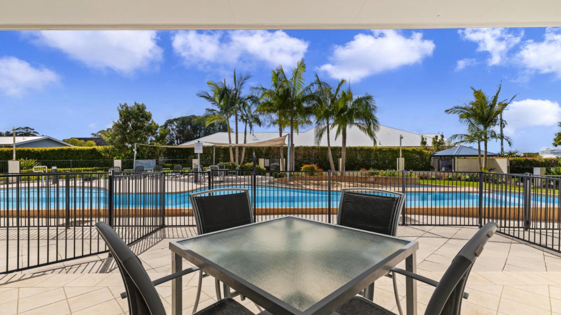 Outdoor swimming pool. There is a steam room and gym available