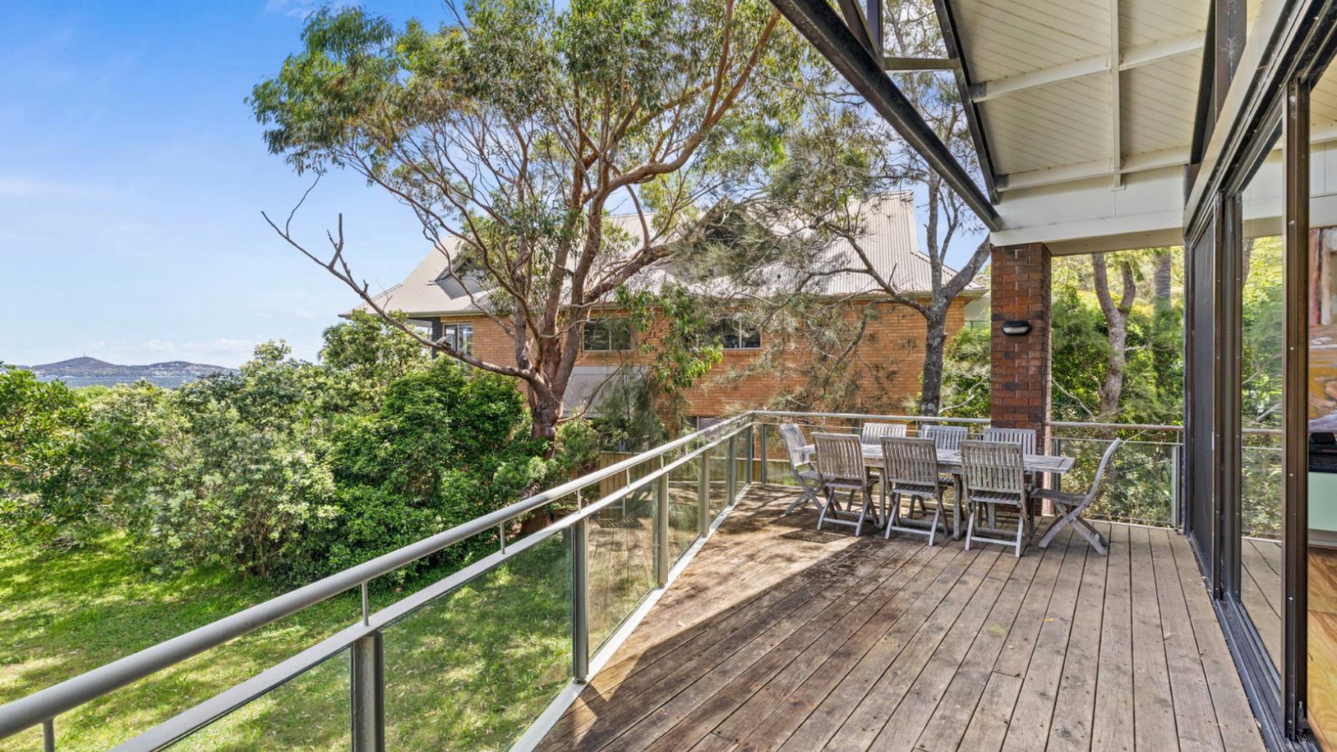 Stunning 6 bedroom property with views of Port Stephens. Top floor comprises open plan kitchen with modern appliances, there is a casual eating area with wicker table and chairs, large lounge room with 2 and 3 seater wicker lounges and 2 wicker armchairs great for relaxing and looking out to lovely bush surrounds and views of Jimmys Beach. Open plan formal dining setting for 10. There is a large deck which flows off the casual area with outdoor setting and gas barbecue. There are 3 bedrooms upstairs with powder room and main bathroom. Downstairs area has a second lounge room with TV and 3 more bedrooms. This property has WIFI - Linen is not supplied but can be hired from us.