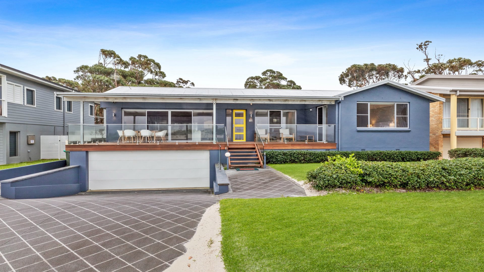 Experience the ultimate in coastal living with this single-level home, offering breathtaking views of Jimmys Beach and Port Stephens. This stunning property features three bedrooms and two bathrooms, including a luxurious ensuite with a shower and toilet. The main bathroom is equipped with a large corner bath for a relaxing soak. The heart of the home is a deluxe kitchen, perfect for gourmet cooking and entertaining guests. The spacious loungeroom provides endless views overlooking Port Stephens, creating a serene and inviting atmosphere. Outdoor living is a highlight, with a large front deck offering lovely seating areas to take in the spectacular beach view. The expansive back deck is ideal for entertaining, complete with outdoor furniture and a barbecue setup. Whether you're hosting a summer barbecue or enjoying a quiet evening outdoors, this home provides the perfect backdrop for any occasion. Sleeps 6 (2 queens and 2 singles) This property has WIFI - NO PETS ALLOWED - Linen can be hired from us and the cost is $22 per person.