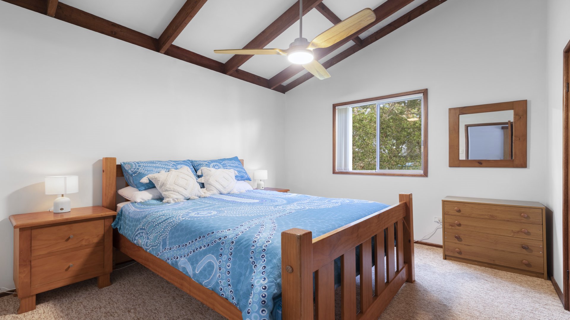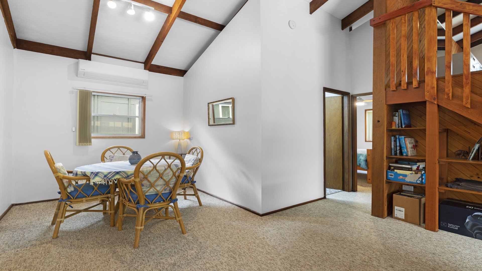 Lovely 3-4 bedroom 2 bathroom home which is situated in the quiet Margaret Street. This property is new to the market. Bedroom one has 1 queen bed and ceiling fan, bedroom two has 1 queen bed and ceiling fan, bedroom three has 1 queen and ceiling fan and a Loft bedroom - 1 double bed and pedestal fan. Delightful kitchen with large eating area adjacent, sunken lounge room with lounge suite and large screen TV, airconditioning in kitchen and living area. Large pool room with bar fridge, laundry with washing, outdoor setting and barbecue. Sleeps 8 - (3 queens and 1 double) Linen is not supplied at this property but can be hired from us and the cost is $22 per person. PET FRIENDLY